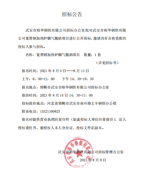 宽带钢加热炉烟气脱硝项目 招标公告 -凯发平台